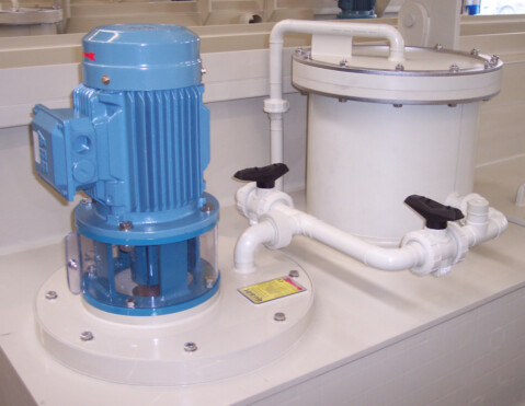 Einsatz als Filterpumpe in der Galvanotechnik. Hohe chemische und thermische Beanspruchung.